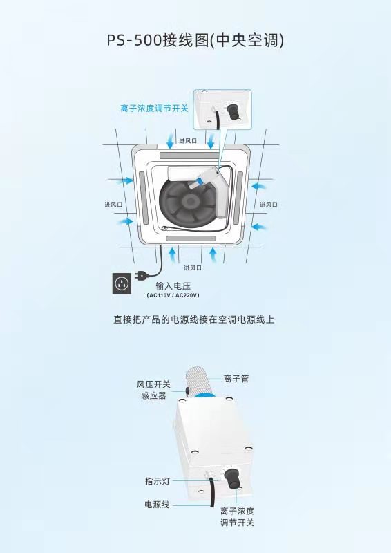 吸顶式空调电离空气净化器系统