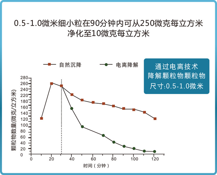 空气中尘粒及花粉通过与离子键结合,这些带电粒子快速凝聚成颗粒,增加它们的大小,更容易被过滤器除去,减少呼吸区中的细菌