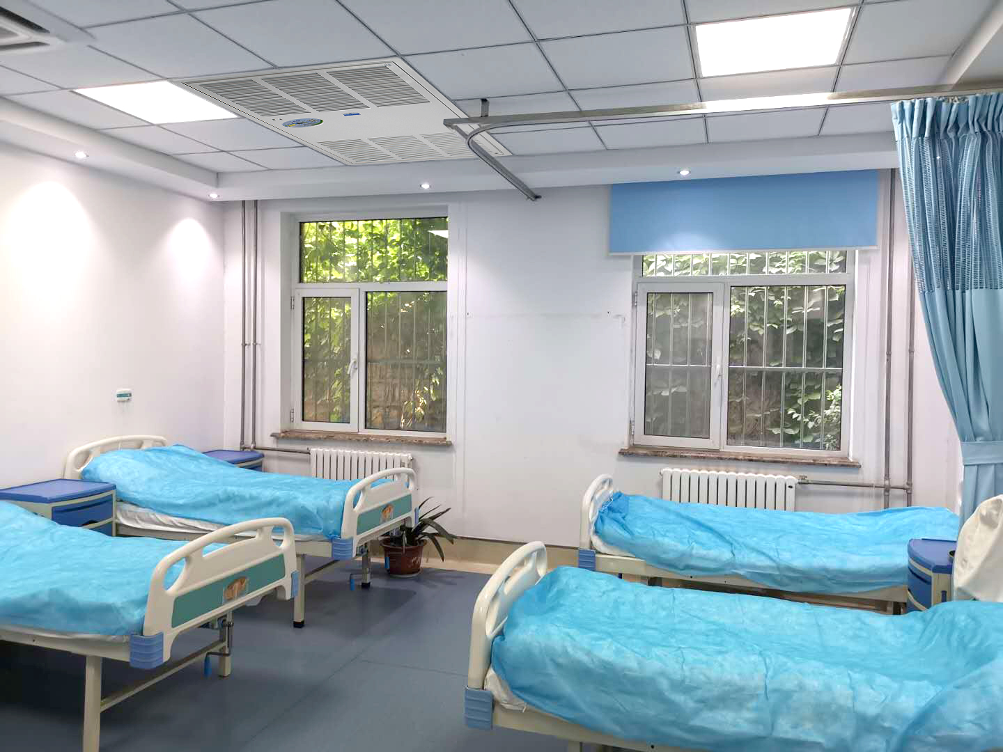 医生病房也是需要重点关注消毒杀菌的场所,通过采用科学设计的净化空气处理系统,将细菌病毒彻底得消灭,建立科学的空气消毒体系,实行人、物流程和实施严格的分区管理,达到控制空气质量与环境卫生,防止交叉感染,保护病人与医护人员安全的目的。